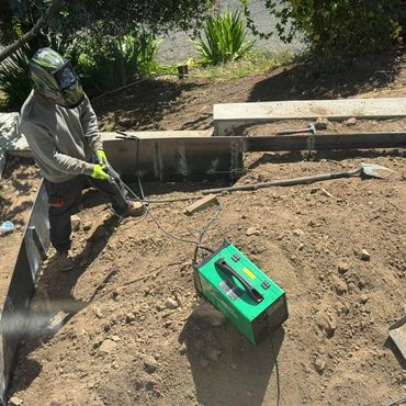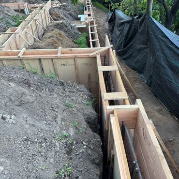 Once the trenches, drainage, forms, piers and rebar were all in place, the concrete was poured and expertly formed.