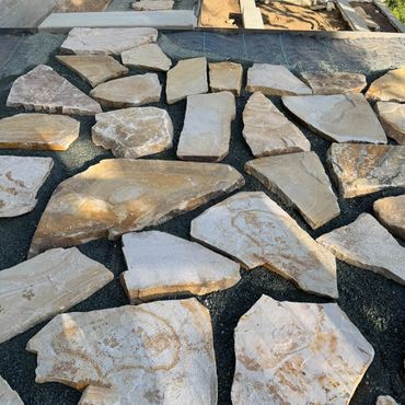 We used natural Utah flagstones and Sierra Ginger gravel that matched each other perfectly and worked nicely with the cement and metal edging. The combination of materials is stunning.